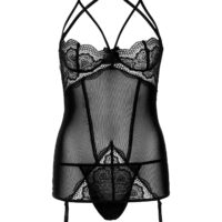 Maak je liefdes leven spannender in deze jurk met verstelbare jarretelbandjes. Met het korseteffect aan de voorkant en de laaguitgesneden achterkant maak jij jezelf onweerstaanbaar. De jurk komt samen met bijpassende string van mesh.