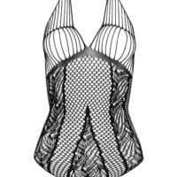 De Body FB003 in stijlvol zwart is een elegant en sensueel lingeriestuk dat uitblinkt door hoogwaardige afwerking en verfijnde details. Het zachte, rekbare materiaal sluit perfect aan op het lichaam, accentueert de vrouwelijke vormen en biedt maximaal comfort. De diepe halslijn, versierd met fijne kant en doorschijnende inzetstukken, voegt een verleidelijke elegantie toe en maakt deze body een echte blikvanger. De open rug met sierlijke bandjes zorgt voor een vleugje extravagantie en versterkt de sensuele uitstraling. Een opvallend detail is het open kruis, wat een extra erotisch accent toevoegt. Ideaal voor speciale gelegenheden of als een verfijnde aanvulling op elke lingerieverzameling, combineert de Body FB003 moeiteloos elegantie, comfort en sensualiteit in een perfect harmonieus ontwerp.