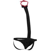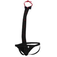 Een absoluut ondeugende maar intimiderende baaslook. Wat wil een mens nog meer? Een vaste outfit om je in de rol te krijgen zodra je hem draagt. Absoluut onvergelijkbaar, stijlvol ontwerp dat u zeker in het middelpunt van de belangstelling zal stellen. Perfect voor toneelvoorstellingen, rollenspellen of een perfecte toevoeging voor je stoute momenten om wat pit en plezier toe te voegen. Verras je partner met dit geweldige herenkledingstuk door wat plezier toe te voegen aan je kast met deze klassieke smoking-kanten string, gecombineerd met een jockstrap aan de achterkant, voor minimale bedekking en heel veel exposure. Een gemakkelijke manier om te pronken met je perfect gevormde en opgeheven broodjes.